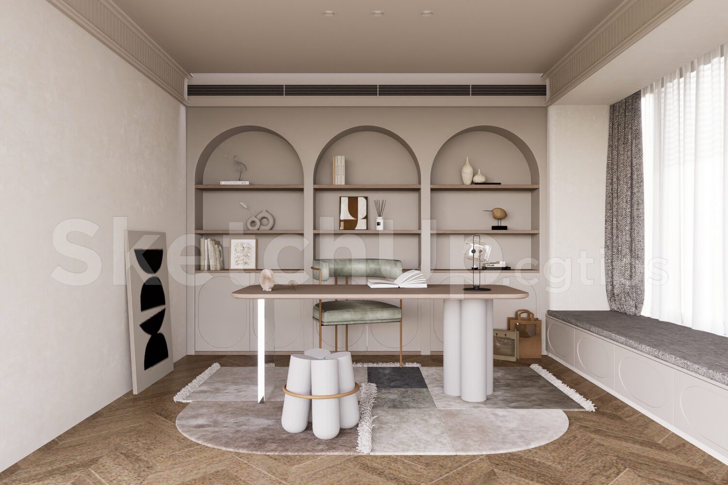 A standout feature of these SketchUp libraries is their compatibility with V-Ray and Enscape, ensuring realistic, vivid, and professional rendering results. This helps designers, architects, and 3D artists save valuable time while significantly enhancing the quality of their final projects. The library is continuously updated with the latest design trends, covering a wide range of styles from classical and modern to minimalistic.