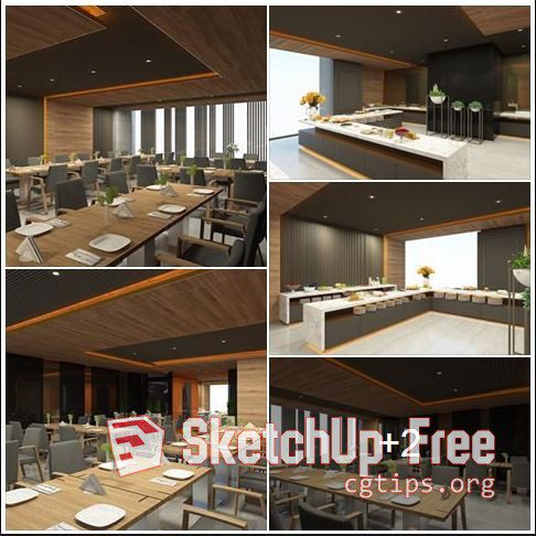 1678 Interior Restaurant Scene Sketchup Model Free Download